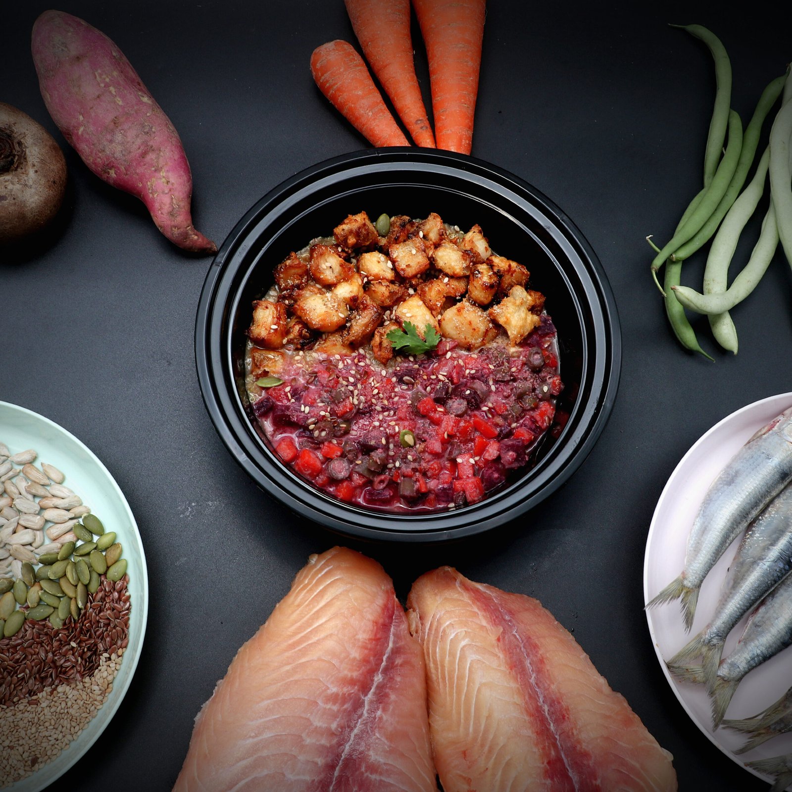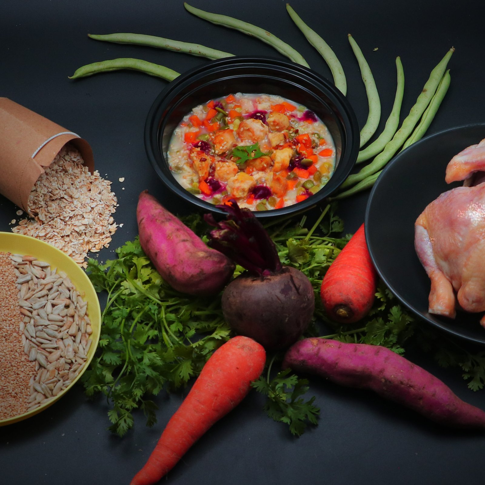 We use real, whole ingredients like farm-fresh veggies, lean meats, seeds, and superfoods. We have carefully curated our ingredient list, which is safe for you and provides the best nutritional spectrum. No fillers, no artificial additives—just wholesome goodness.