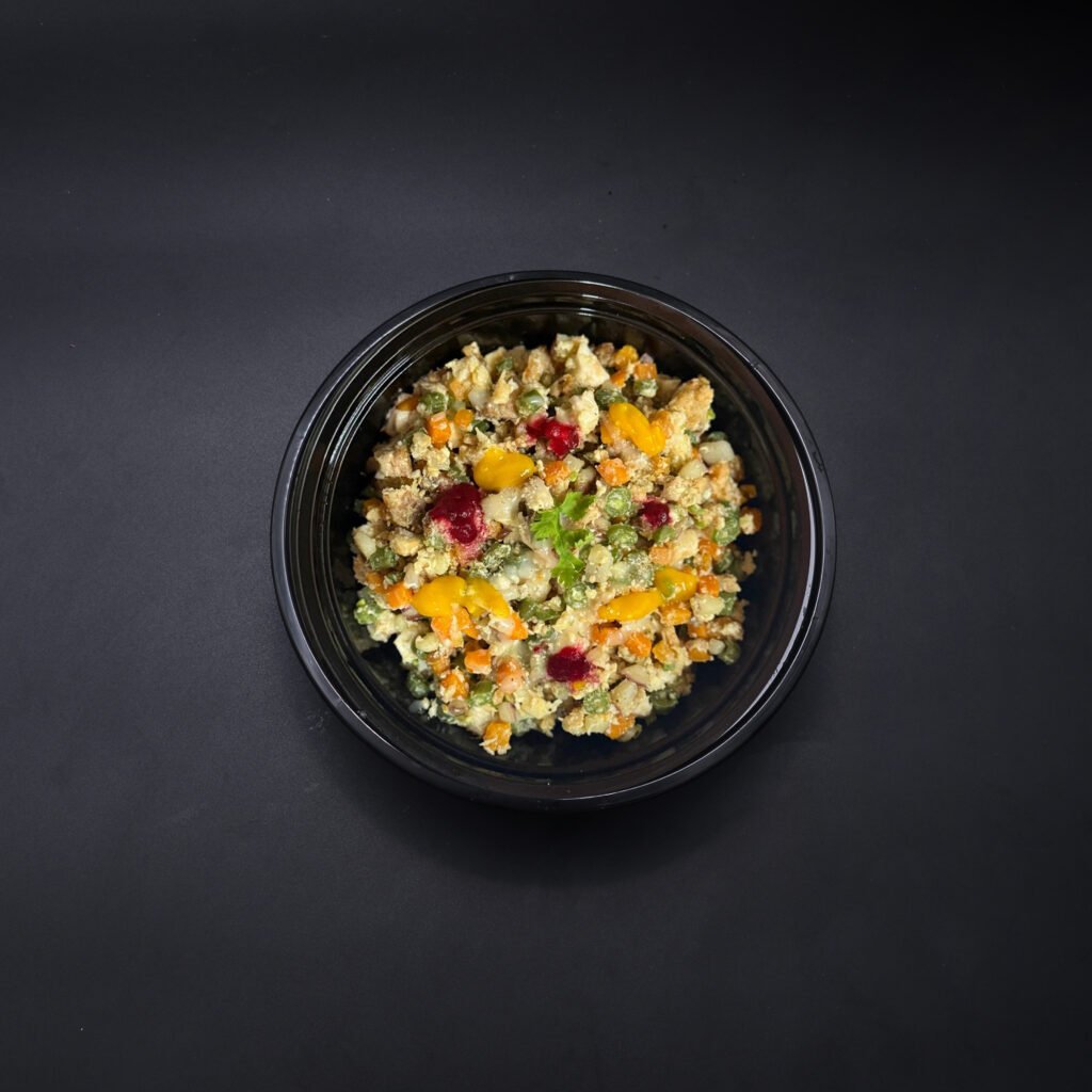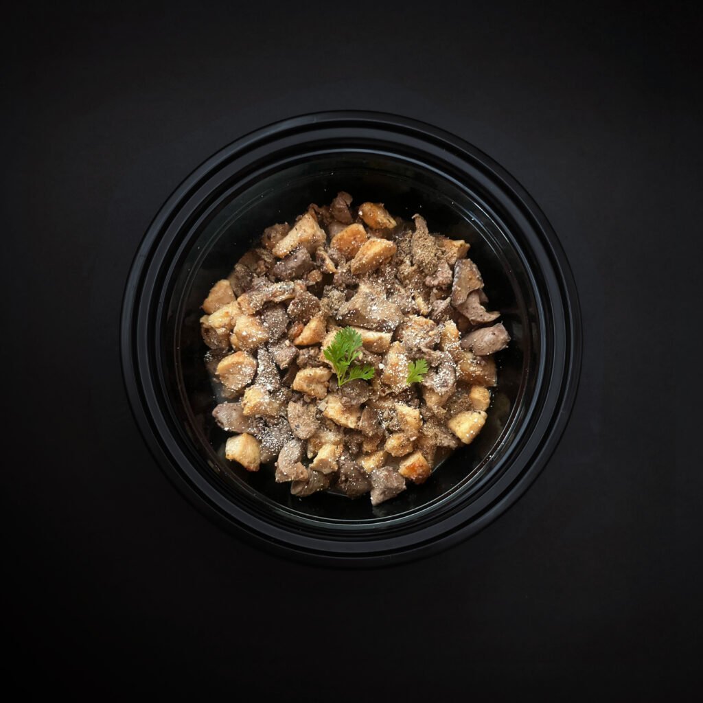 Combination of Chicken poppers with Chicken liver and chicken gizzard, boiled and then mildly fried in coconut oil. A total Chicken heaven for pets with all pieces dipped in chicken broth and garnished with grinded mixed seeds for digestion.